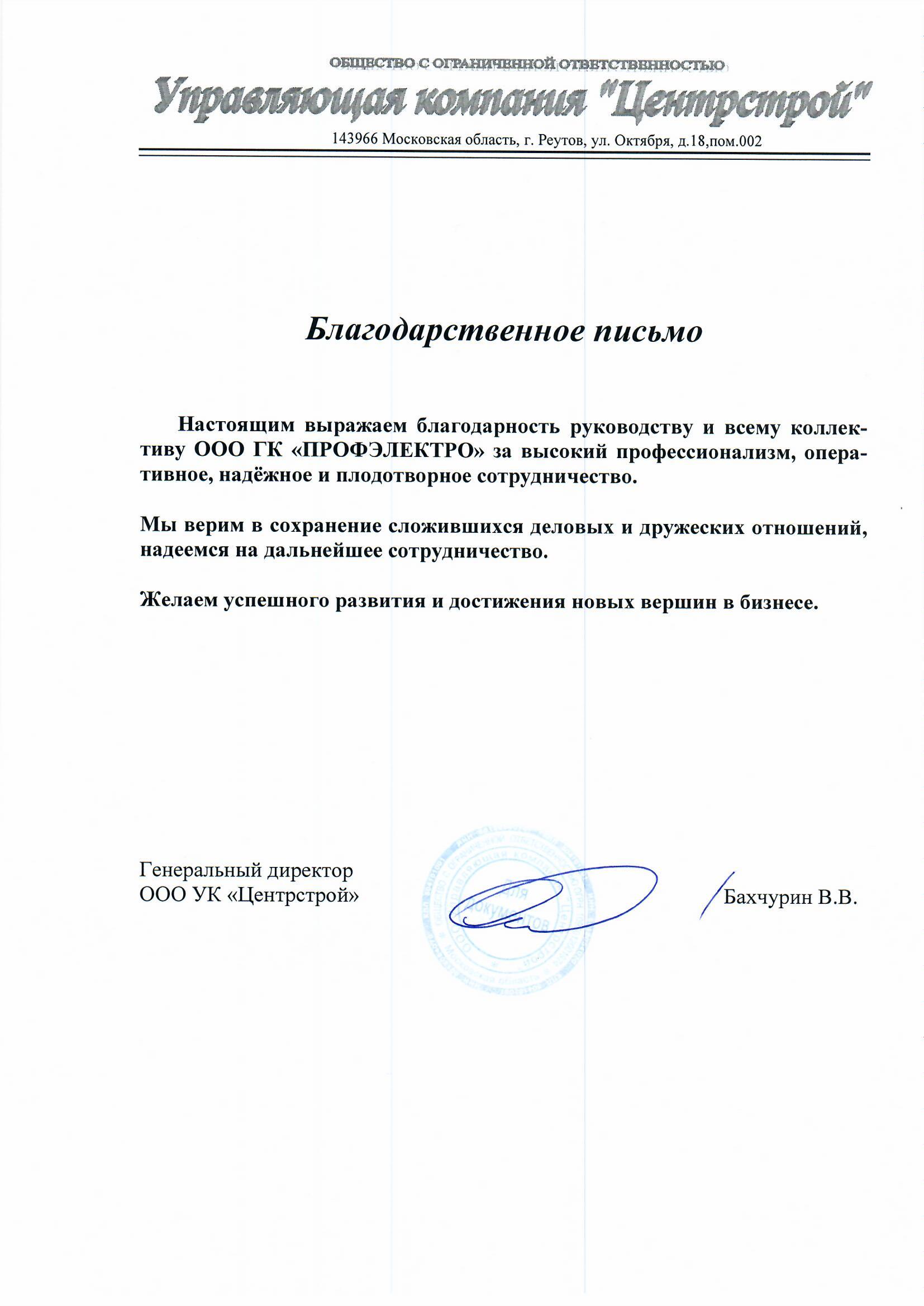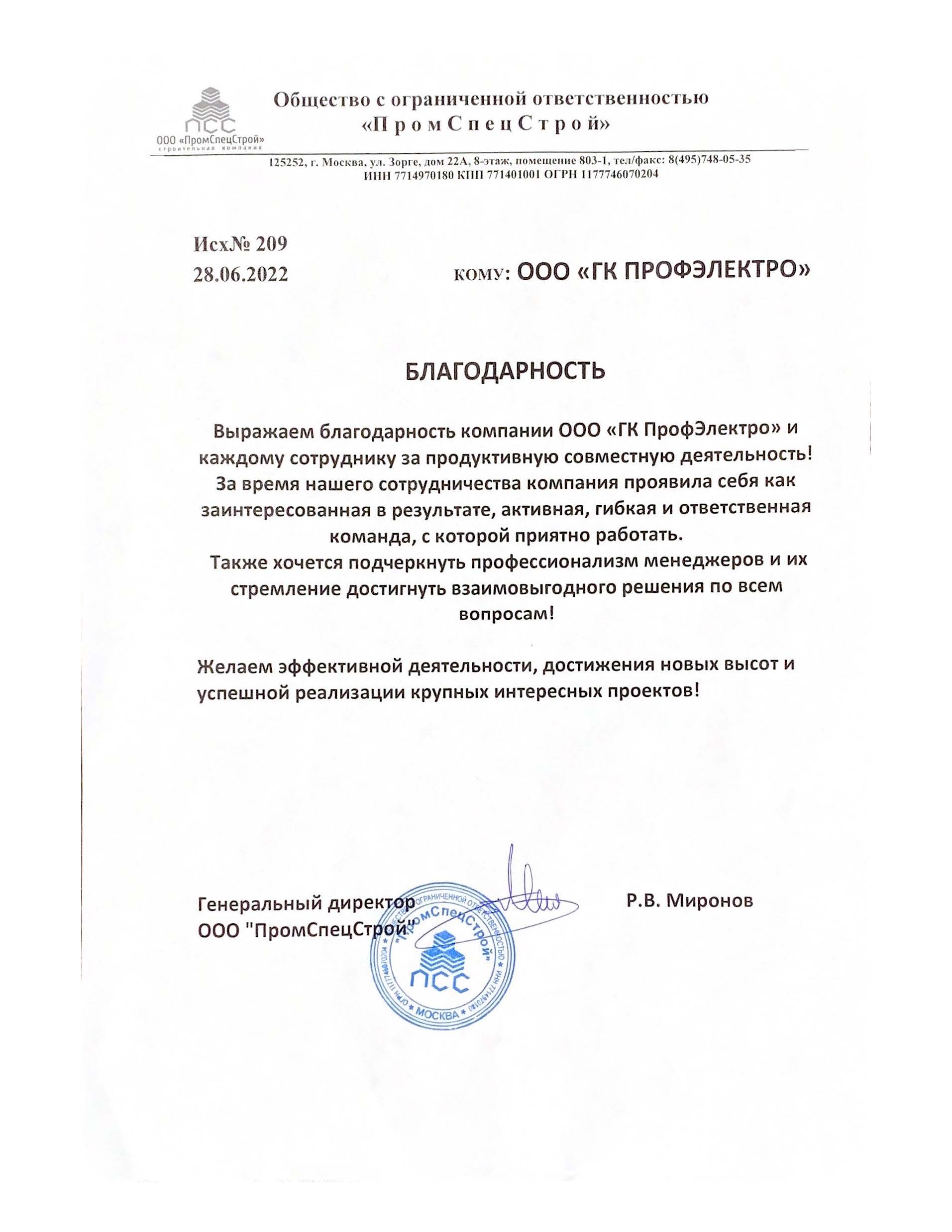 ООО РемПромСтрой выражает искреннюю благодарность коллективу вашей компании за долгое и плодотворное сотрудничество.