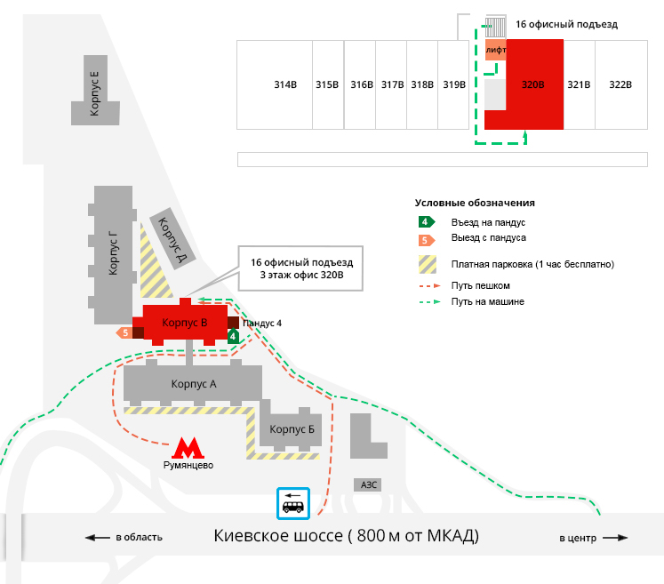 108811, г. Москва, 22-й км Киевского шоссе (п. Московский), домовл. 4, стр. 2, корпус В, подъезд офисный 16, офис 320в.